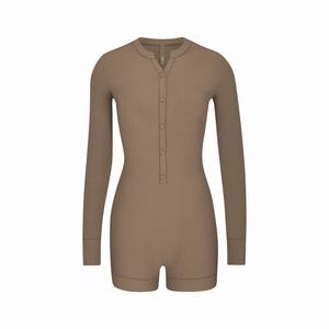 Onesie Skims SOFT LOUNGE BUTTON UP HENLEY καφε | 7240196-IY